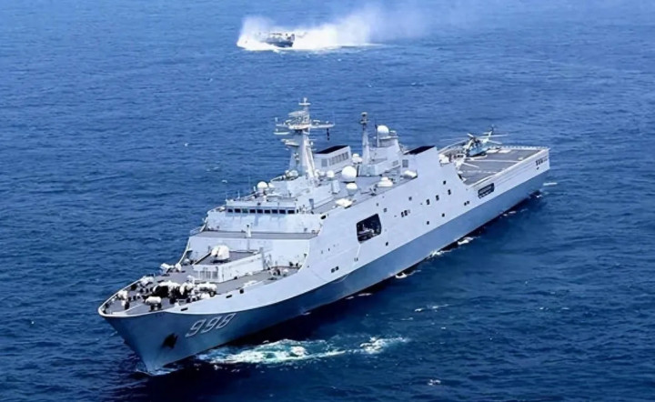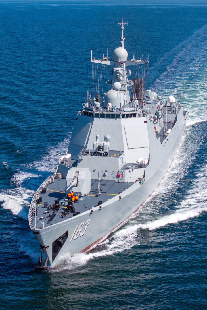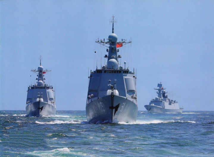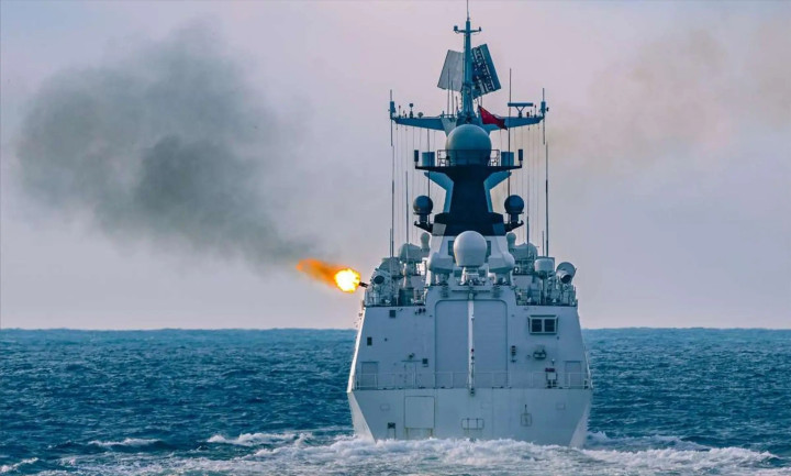从细节刻画就能看出,视频中被设定为假想敌的两艘军舰,明确指向中国052D型驱逐舰。