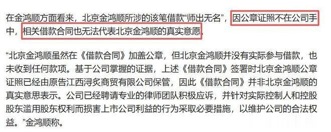 随着涉诉公告披露,一场令人震惊的暗箱操作浮出水面,揭开了利益输送的冰山一角。公告显示,2025年9月8日,海南众德、金鸿顺全资子公司北京金鸿顺与东泰腾辉共同与江西浔炙商贸签订1.25亿元借款合同,借款期限仅一个多月,年利率高达12%。合同签订后,1.25亿元款项直接转入东泰腾辉账户,而北京金鸿顺虽加盖公章,却既未参与借款也未收到任何款项。更离谱的是,金鸿顺方面明确表示,签订合同时北京金鸿顺的公章证照已由出借方江西浔炙商贸保管,该合同并非公司真实意愿。调查发现,东泰腾辉与海南众德关系密切,是实际借款人,而2025年上半年仍处于亏损状态的北京金鸿顺,本身并无大额资金需求,只是被强行拉来的“背锅侠”。